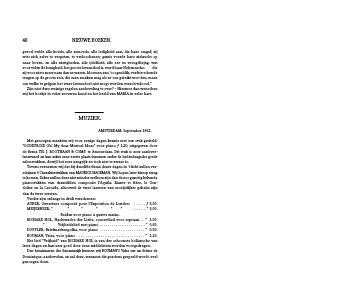 Tevens vernemen wij dat bij dezelfde firma dezer dagen in ’t licht zullen ver-schijnen 6 Charakterstukken van MAURICE HAGEMAN. Wij hopen later hierop terug te komen. Zeker zullen deze niet minder welkom zijn dan de zoo gunstig bekende pianostukken van denzelfden componist l’Aquila, Riante et fière, le Gon- dolier en la Cascade, alhoewel de twee laatsten van moeijelijker gehalte zijn dan de twee eersten.