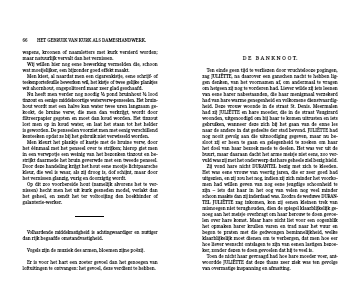 Zij vond hare nicht DURANTEL bezig met zich te kleeden. Het was eene vrouw van veertig jaren, die er zeer goed had uitgezien, en zij zou het nog, indien zij zich minder het voorko-men had willen geven van nog eene jeugdige schoonheid te zijn – iets dat haar in het oog van velen nog veel minder schoon maakte dan zij inderdaad was. Zoodra de weduwe DURAN-TEL JULIËTTE zag inkomen, kon zij eenen kleinen trek van misnoegen niet terughouden, dien de spiegel klaarblijkelijk ge-noeg aan het meisje overbragt om haar berouw te doen gevoe- len over hare komst. Maar hare nicht liet voor een oogenblik het opmaken harer krullen varen en trad naar het vuur en begon te praten met die gedwongen beminnelijkheid, welke klaarblijkelijk moet dienen om te verbergen, dat men hoe eer hoe liever wenscht ontslagen te zijn van eenen lastigen bezoe- ker, zonder dezen te doen gevoelen dat hij te veel is.