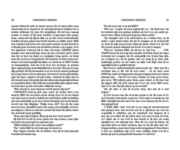 CONSTANCE bewoog zich niet, maar de zachte teere toon waarop KRIS die woorden sprak, drong door tot in het diepst van haar hart en deed er kalmte in nederdalen, zulk een kalmte als eens neerdaalde op de door storm bewogene zee na het kracht-woord van den Magtige: “Zwijg, wees stil!” Zou zij die stem meer hooren, diezelfde stem even zacht, even liefelijk, even be-moedigend, ofschoon wel wat onvast! Zij bleef stil zitten wach-ten, bevende maar gelukkig.