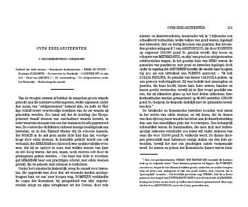 natuur- en kunstwonderen, waaronder wij in ’t bijzonder een schaakbord vermelden, welks vakjes van goud waren, ingelegd met juweelen; drie en dertig kroonen van paarlen; den broem-den gouden wijngaard 1) van ARISTOBULUS, die door JOSEPHUS op ongeveer 100,000 pond St. geschat wordt; den troon en schepter van MITHRIDATES, en zijn’ van goud en edelgesteenten schitterenden wagen, In het gouden huis van NERO waren de paneelen van paarlmoer, met goud en juweelen ingelegd; doch onder de regering der ANTONINEN bereikte die weelde haar hoogsten top zoo als een uittreksel van PLINIUS aantoont: – “Ik heb LOLLIA PAULINA, de gemalin van keizer CALIGULA gezien, op een gewoon verlovingsfeest. Zij was bedekt met smaragden en paarlen, die haar hoofd, haren hals, hare armen, handen en haren gordel versierden, terwijl zij in dier voege geschikt wa-ren, dat zij elkanders glans op het best deden uitkomen; deze kostbaarheden werden gewaardeerd op 40,000 sestertien (336,000 pond St.) hetgeen de keizerin dadelijk met de quitantiën bewij-zen kon.”