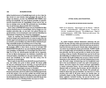 Meer dan honderd jaar later speelden een paar handschoenen die koningin ANNA te duur waren en door de hertogin VAN MARLBOUROUGH gekocht en op eene hofpartij gedragen werden, eene gewigtige, staatkundige rol. De koningin was zwaar belee-digd, de tot dus ver alvermogende hertogin viel in ongenade, en wat de fijnste kunstgrepen van bekwame staatslieden niet vermogt hadden, bewerkten nu een paar handschoenen – den vrede met Frankrijk en het einde van den oorlog over de Spaansche troonsopvolging.