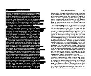 Op deze wijze maakte de JUEZ DE PAZ van de Cidade van Dia-mantino zijn fortuin door een’ enkelen goeden koop. In den tijd toen de diamanthandel nog in zijn grootsten bloei was, was hij een klant in de stad, en juist met een’ nieuwen voor- raad van Rio Janeiro teruggekeerd zijnde, werd hij ’s nachts door een kloppen op de deur gewerkt. Daar hij vermoeid was, opende hij niet dadelijk; doch het kloppen hield aan, zoodat hij opstond en een’ slaaf vond die hem een’ buitengewoon groo-ten diamand te koop aanbood. De gevraagde prijs was 600,000 rees of ongeveer 180 pd. St. – Niet zooveel gereed geld hebbende, borgde hij het ontbrekende en keerde den volgenden morgen naar Rio terug, onder voorwendsel dat hij iets vergeten had.