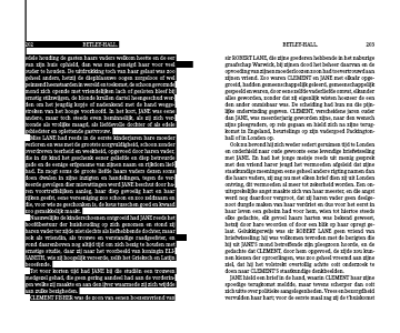 edele houding de gasten haars vaders welkom heette en de eer van zijn huis ophield, dan was men geneigd haar voor veel ouder te houden. De uitdrukking toch van haar gelaat was zoo geheel anders, hetzij de diepblaauwe oogen zorgeloos of wel peinzend heenstaarden in wereld en toekomst, de schoon gevormde mond zich opende met vriendelijken lach of gesloten bleef bij ernstig stilzwijgen, de blonde krullen dartel heengeschud wer-den om het jeugdig kopje of nadenkend met de hand wegge-streken van het hooge voorhoofd. In het kort, JANE was eene andere, maar toch steeds even beminnelijk, als zij zich ver-toonde als vrolijke maagd, als liefdevolle dochter of als edele gebiedster en oplettende gastvrouw.