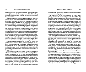 Verwijderen wij ons uit die gevaarlijke nabijheid dan, ach! geraken wij uit Scylla in Charybdis; die onfrissche hoed opge-pronkt met scharlaken roode veêren, verbleekte bloemen en oude overblijfselen van kant en lint, biedt eenen regt onaan-genamen aanblik. De vogelaar uit MOZART’S “Tooverfluit” had zich geen meer passend hoofddeksel kunnen kiezen als zinnebeeld van zijn naam, maar de dame zou voorzeker beter gehandeld hebben met zich te vertoonen in den goedkoopsten stroohoed met het eenvoudigste lint, dan in een tooisel dat sterk doet denken aan de prima donna van een reizend tooneelgezelschap. Terwijl wij even het oog laten gaan over het geheele voorkomen van dit be-koorlijk wezen, bemerken wij nog eene uitgescheurde laars en daar-boven eene kous die aan reinheid veel te wenschen laat: schoeisel en kapsel staan in de innigste, zij het dan ook niet weldadigste harmonie en spreken te duidelijk voor de eigenschappen onzer dame dan dat verdere uitweidingen hier noodig zouden zijn.