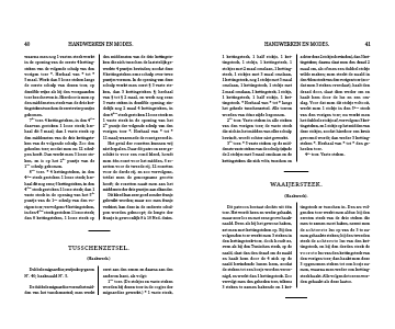 den middensten van de drie kettingste-ken die zich tusschen de laatstelijk ge-werkte 4 puntjes bevinden; zoodat deze 8 kettingsteken eene schulp over twee puntjes vormen. In de opening van deze schulp werkt men eerst § 3 vaste ste-ken, dan 3 kettingsteken §; herhaal van § tot § 2 maal, en werk nog eens 3 vaste steken in dezelfde opening; ein-delijk nog 2 maal 4 kettingsteken, in den 4den steek gestoken 1 losse steek en 1 vaste steek in de opening van het 2de puntje der volgende schulp van den vorigen toer *. Herhaal van * tot * 11 maal; waarmede de rozet gereed is.