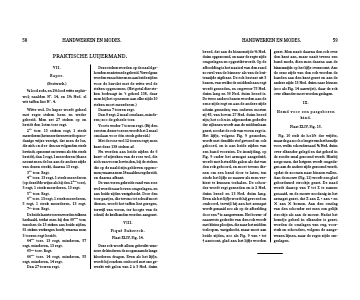 Nu worden aan beide zijden de 6 kant- of zijsteken van de rose wol, die zich van voren bevinden, bij de steken die op de naald zijn gebleven opgeno-men; waarna men 18 naalden regt breidt, en daarna afkant.