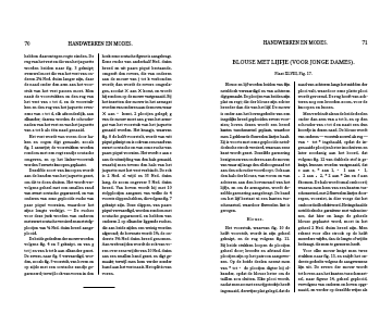 Het vest wordt van voren door ha-ken en oogen digt gemaakt, zooals fig. 1 aanwijst; de voorstukken worden rondom met een regt randje soutache omgeven, en op het linker-voorstuk worden 5 zwarte knoopen geplaatst.