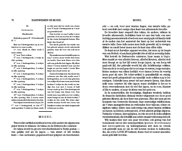 In de zomerstoffen, die doorzigtige, diaphane weefsels, hebben de fransche farbieken ditmaal weder uitgemunt zoo door goed gekozen kleuren als door keur van patronen. Hier ziet men groote bouquets van Oostersche bloemen; daar eenvoudige veldbloemen, als ’t ware zaamgevlochten en verbonden door tallooze, schier on-zigtbare takjes; elders eene nabootsing van zwart kanten strikken en lussen op lichten achtergrond, of wel allerlei grillige figuren, Turksche vormen, hieroglyphen, in één woord de bekoorlijkste verscheidenheid, die letterlijk aan ieders smaak voldoening belooft.