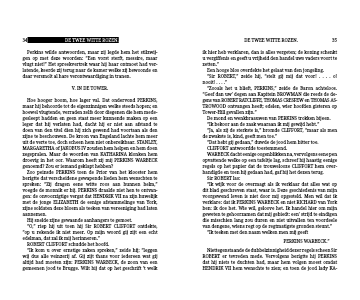 “Ik kom u over ernstige zaken spreken,” zeide hij; “leggen wij dus alle veinzerij af. Gij zijt thans voor iedereen wat gij altijd had moeten zijn: PERKINS WARBECK, de zoon van een gemeenen jood te Brugge. Wilt hij dat op het geschrift ’t welk
