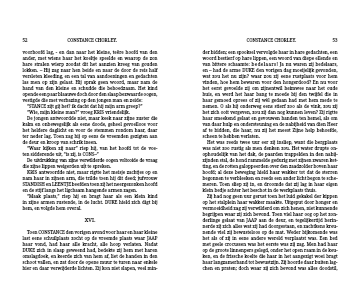 Het was reeds twee uur eer zij insliep, want die bergplaats was niet zoo rustig als men denken zou. Het water drupte on-ophoudelijk van het dak, de paarden trappelden in den nabij-zijnden stal, de hond rammelde gedurig met zijnen zwaren ket-ting, en de rotten galoppeerden over den zaadzolder boven haar hoofd; al deze beweging hield haar wakker tot dat de sterren begonnen te verbleeken en reeds een ander licht begon te sche-meren. Toen sliep zij in, en droomde dat zij lag in haar eigen klein bedje achter het beschot in de werkplaats thuis.