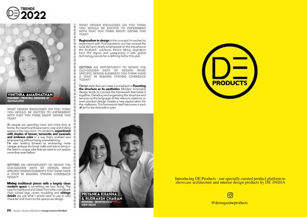 20 | January - February 2022 Edition // Design Essentia // DE INDIA