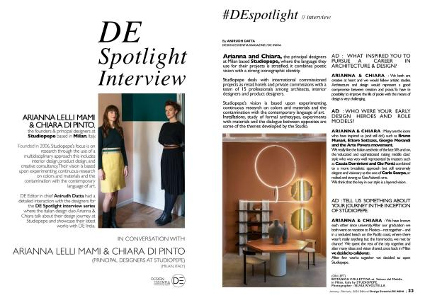 DE Editor in chief Anirudh Datta had a detailed interaction with the designers for the DE Spotlight interview series where the italian design duo Arianna & Chiara talk about their design journey at