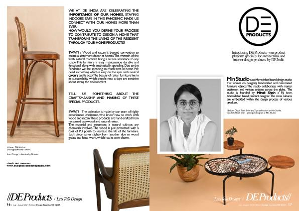 16 | July - August 2021 Edition // Design Essentia // DE INDIA