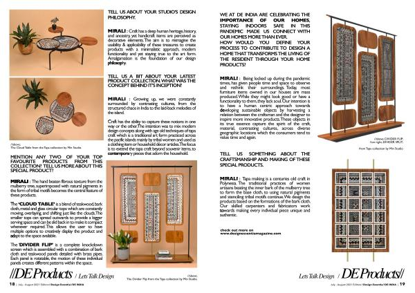 18 | July - August 2021 Edition // Design Essentia // DE INDIA