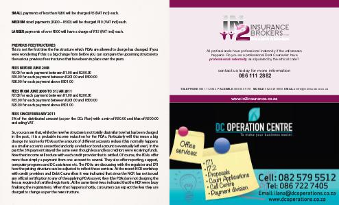 3% of the distributed amount (as per the DCs Plan) with a min of R50.00 and Max of R500.00