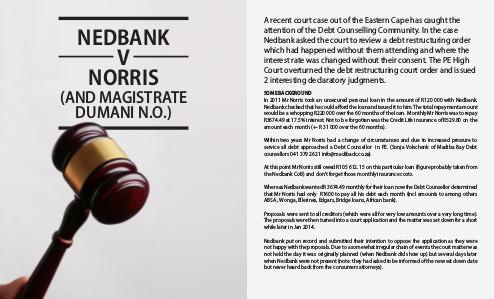 that Mr Norris had only R1600 to pay all his debt each month (incl amounts to among others