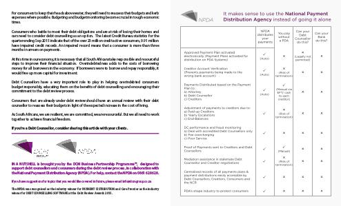budget responsibly, educating them on the benefits of debt counselling and encouraging their