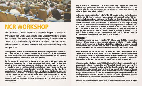 Legodi (who is Manager of the NCR’s Debt Counselling Department) to welcome everyone