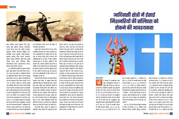 आरदर्ासी क्ेत्रों में ईसाई मिशनरियों की संलिप्तता को रोकने की आर्श्यकता