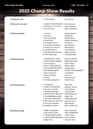WSCA Digital Spotlight www. wsca. org 2025- December- 17 2025 Champ Show Results