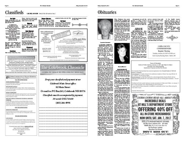 Back issues of Coos Magazine and Northern New Hampshire Magazine, starting July 1989. $ 1 each, available at the Colebrook Chronicle, 82 Main St., Colebrook, NH. TFN