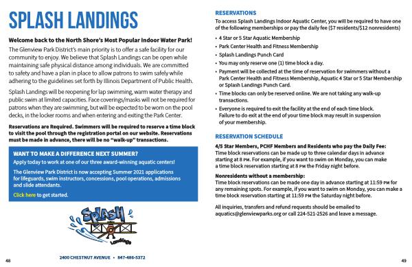 To access Splash Landings Indoor Aquatic Center , you will be required to have one of the following memberships or pay the daily fee ($ 7 residents /$ 12 nonresidents )