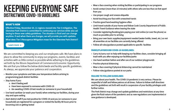 The Park District may change and update guidelines and restrictions at any time given the fluid nature of the pandemic and as new regulations are implemented or new guidance is developed .