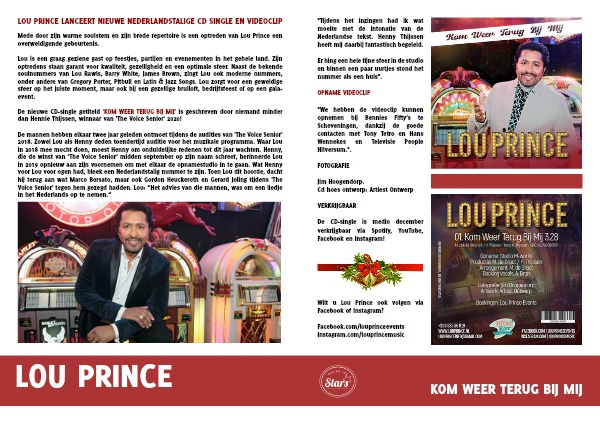LOU PRINCE LANCEERT NIEUWE NEDERLANDSTALIGE CD SINGLE EN VIDEOCLIP