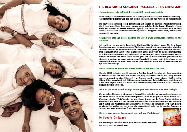 “Deze Kerst gaan we het leven vieren!” Dit is de hoopvolle boodschap van de nieuwe kerstsingle ‘Celebrate this Christmas’ van The New Gospel Sensation: een mix van pop- en gospelmuziek.