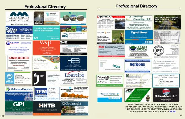 Yearly BUSINESS CARD SPONSORSHIP IS ONLY $ 175 . THE ASCE NH SECTION THANKS OUR MANY SPONSORS FOR THEIR CONTINUING SUPPORT ! IF YOU WOULD LIKE TO ADD YOUR BUSINESS CARD PLEASE EMAIL US HERE !