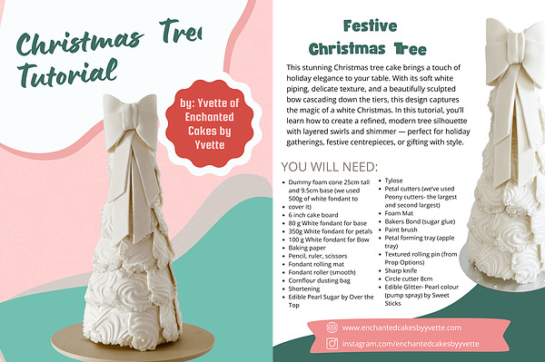 This stunning Christmas tree cake brings a touch of holiday elegance to your table. With its soft white piping, delicate texture, and a beautifully sculpted bow cascading down the tiers, this design captures the magic of a white Christmas. In this tutorial, you’ ll learn how to create a refined, modern tree silhouette with layered swirls and shimmer— perfect for holiday gatherings, festive centrepieces, or gifting with style.