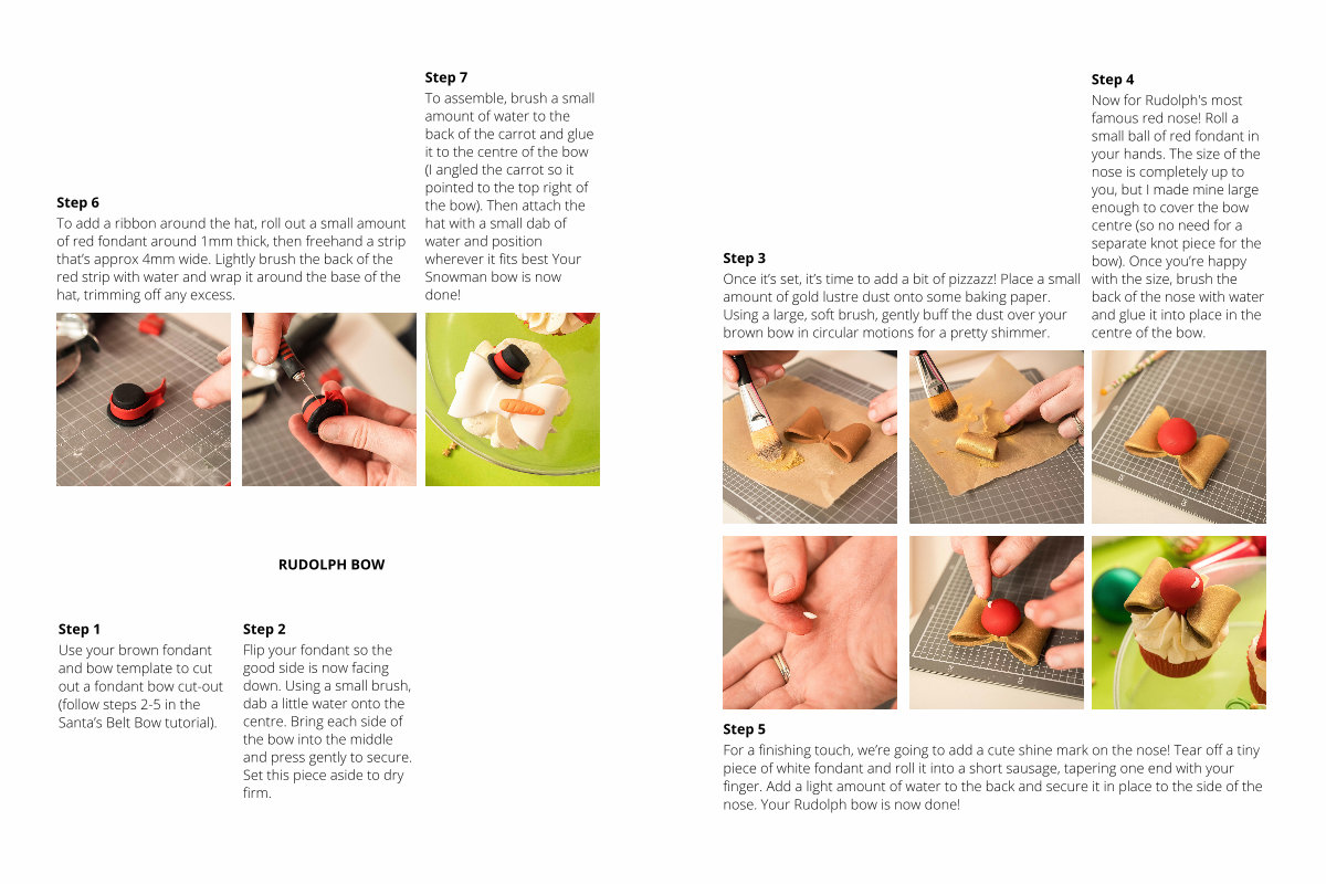Step 1 Use your brown fondant and bow template to cut out a fondant bow cut-out( follow steps 2-5 in the Santa’ s Belt Bow tutorial).