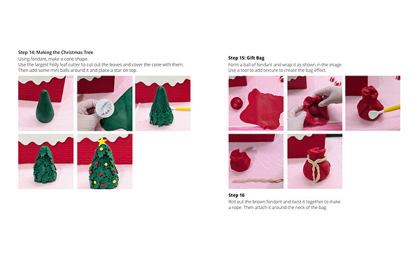 Step 16 Roll out the brown fondant and twist it together to make a rope. Then attach it around the neck of the bag.