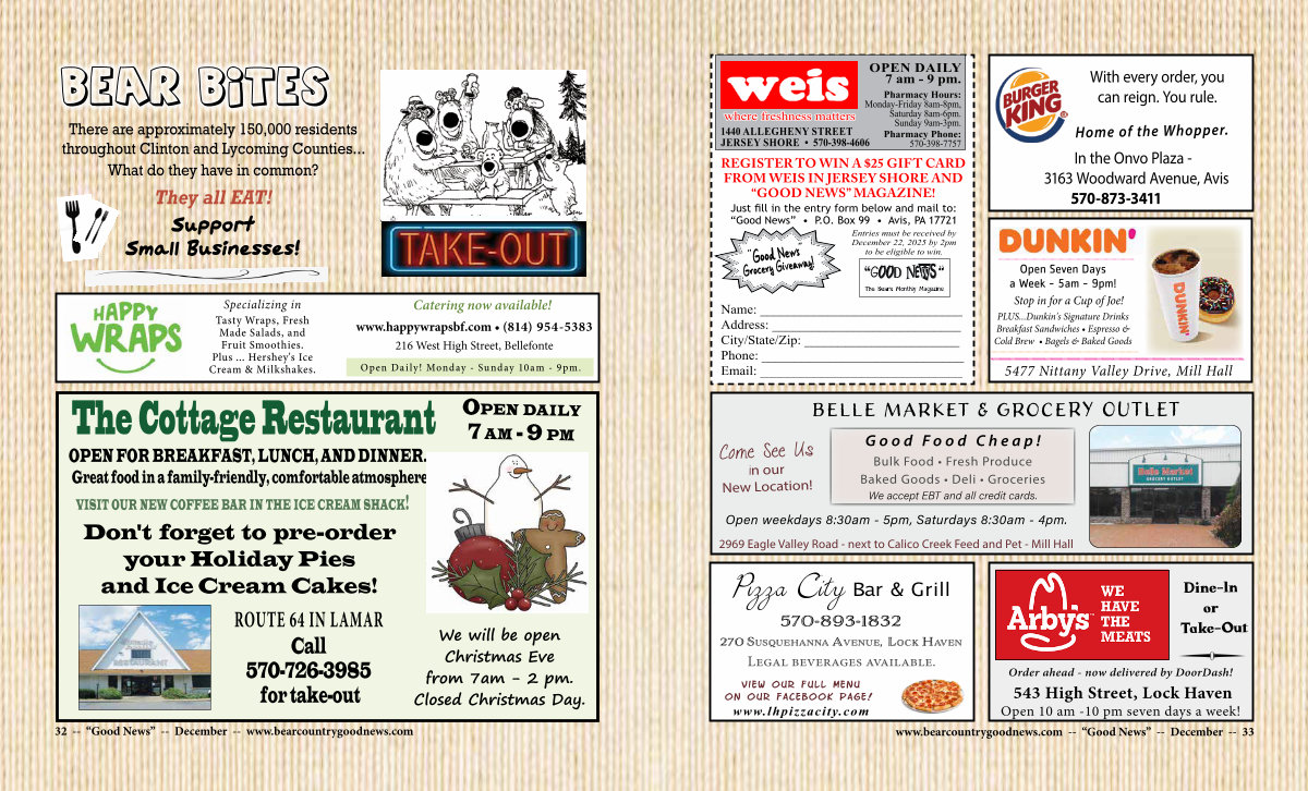There are approximately 150,000 residents throughout Clinton and Lycoming Counties... What do they have in common? They all EAT!