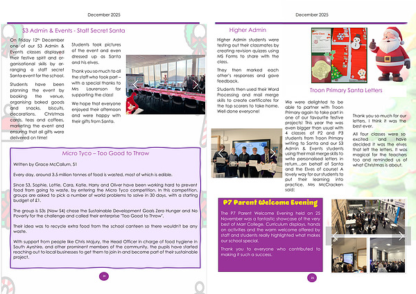 On Friday 12 th December one of our S3 Admin & Events classes displayed their festive spirit and organisational skills by arranging a staff secret Santa event for the school.