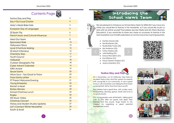 We are pleased to introduce our School News Team for 2025-26! If you have any stories you would like to feature in the newsletter, or if you would like to join us and write an article yourself then please see Miss Wyllie and Mrs Ward( Business Education). If you would like to share any stories or successes to feature in the next newsletter scan the QR code below or contact one of our roaming reporters: