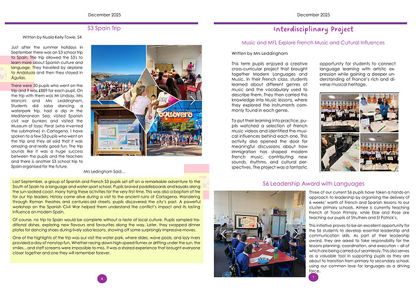 Three of our current S6 pupils have taken a hands-on approach to leadership by organising the delivery of 6 weeks’ worth of French and Spanish lessons to our cluster primary schools. Aimee is currently teaching French at Troon Primary, while Elsie and Rose are teaching our pupils at Struthers and St Patrick’ s.