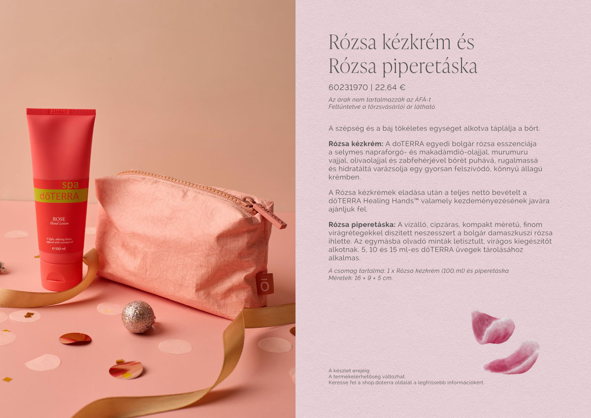 A Rózsa kézkrémek eladása után a teljes nettó bevételt a dōTERRA Healing Hands™ valamely kezdeményezésének javára ajánljuk fel.