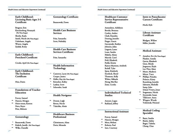 Health Sciences and Education Department ( continued )