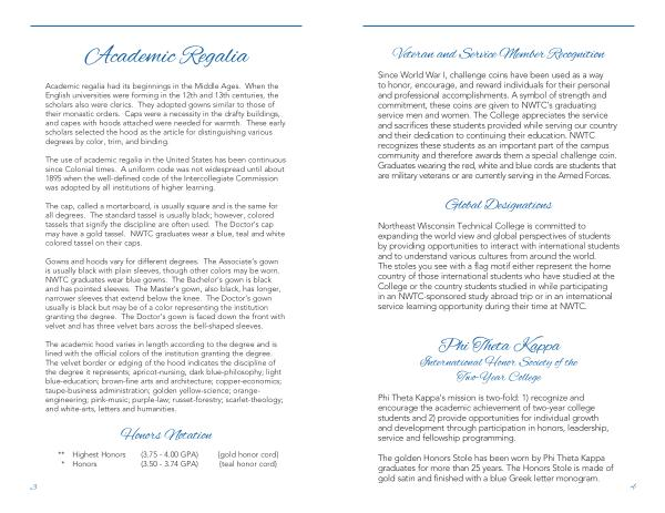 Gowns and hoods vary for different degrees . The Associate ’ s gown is usually black with plain sleeves , though other colors may be worn . NWTC graduates wear blue gowns . The Bachelor ’ s gown is black and has pointed sleeves . The Master ’ s gown , also black , has longer , narrower sleeves that extend below the knee . The Doctor ’ s gown usually is black but may be of a color representing the institution granting the degree . The Doctor ’ s gown is faced down the front with velvet and has three velvet bars across the bell-shaped sleeves .