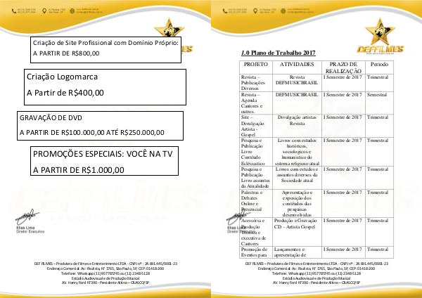 DEF FILMES – Produtora de Filmes e Entretenimento LTDA - CNPJ nº : 24.691.445/0001-23