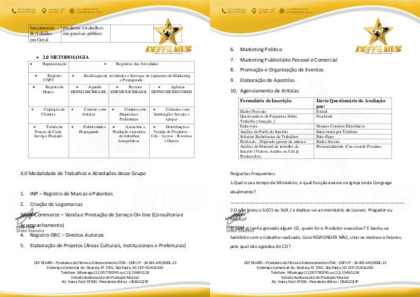DEF FILMES – Produtora de Filmes e Entretenimento LTDA - CNPJ nº : 24.691.445/0001-23