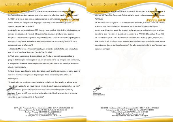 4. No decorrer da Produção do CD, houve acompanhamento de uma equipe de