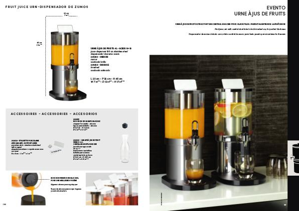 Fruit juice urn with central steel tube to hold crushed ice, for perfect freshness