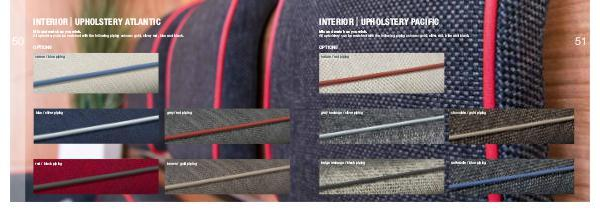 All upholstery can be matched with the following piping colours: gold, silver, red, blue and black.