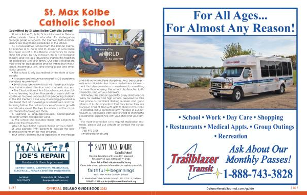 St . Maximilian Kolbe Catholic School - 235 2 nd St . S ., Delano 763-972-2528 – principal @ stmaxkolbeschool . org