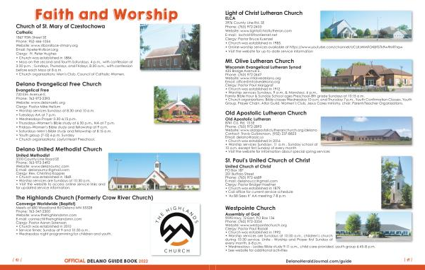 • Worship services Sundays , 11 a . m ., Sunday school at 10 a . m . except fi rst Sunday of every month