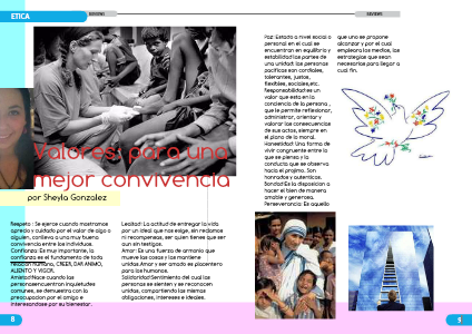 Honestidad: Una forma de vivir congruente entre lo que se piensa y la conducta que se observa hacia el projimo. Son honrados y autenticos.