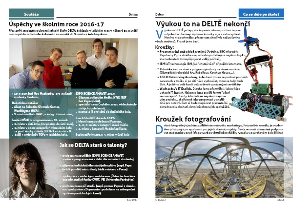 d 1. září se soukromá škola DELTA stala jednou ze tří pilotních škol laboratoří internetu věcí IBM. Pět tříčlenných týmů