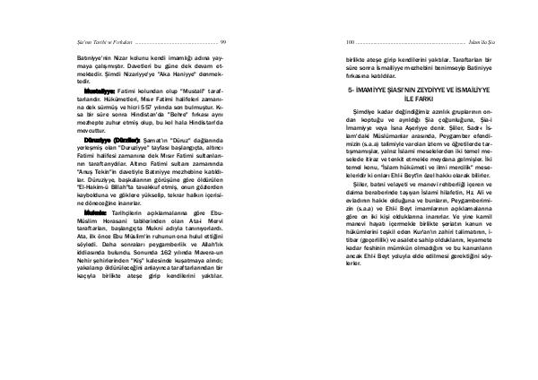 Şia ' nın Tarihi ve Fırkaları............................................................... 99